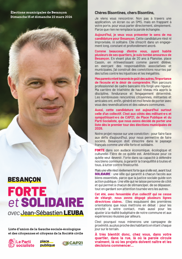 • La lettre aux Bisontins de Jean-Sébastien LEUBA